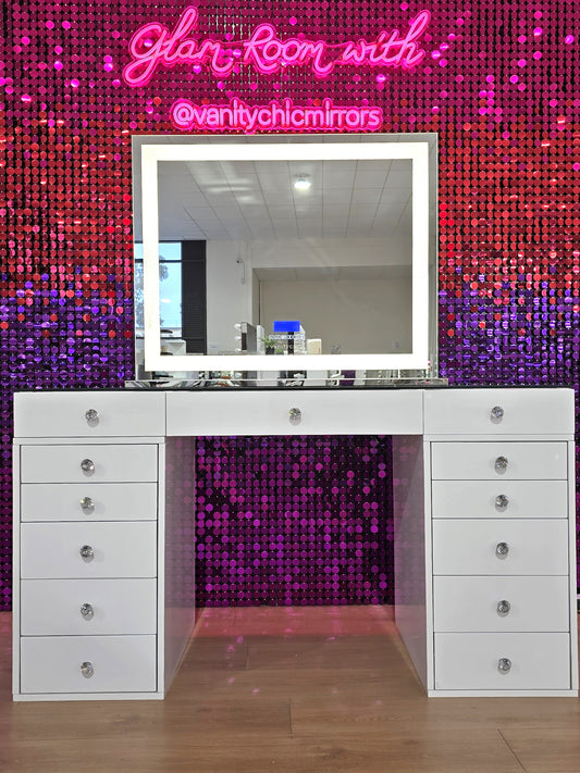Upgrade your room with our sleek and functional makeup/beauty station, designed to bring both style and efficiency to your makeup space. Featuring ample storage, modern finishes, and a comfortable makeup surface, this station helps keep all your beauty tools organized and within reach. Perfect for people who're looking to enhance their room’s aesthetic while maximizing productivity, our makeup station blends luxury and practicality, creating a seamless, professional environment that impresses clients and makes your job easier. Elevate your salon experience with a station that reflects quality and craftsmanship.