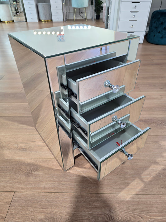 2 x 3 Drawers Mirrored Bedside Table - Silver