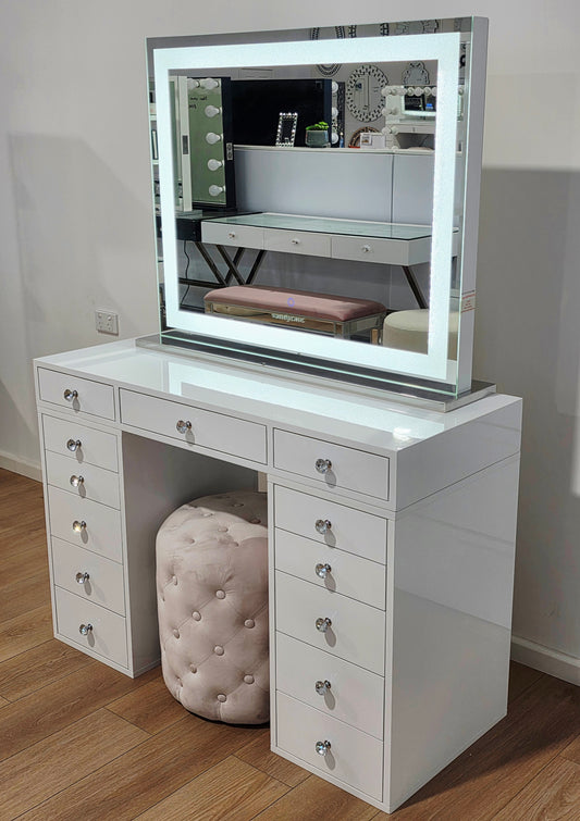 L180cm Diamond Style Beauty Station + Super XL Diamond Style Makeup Mirror with Bluetooth Speakers