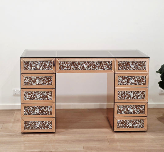 CLEARANCE - Rose Gold Crushed Diamond Style Mirrored Beauty Station