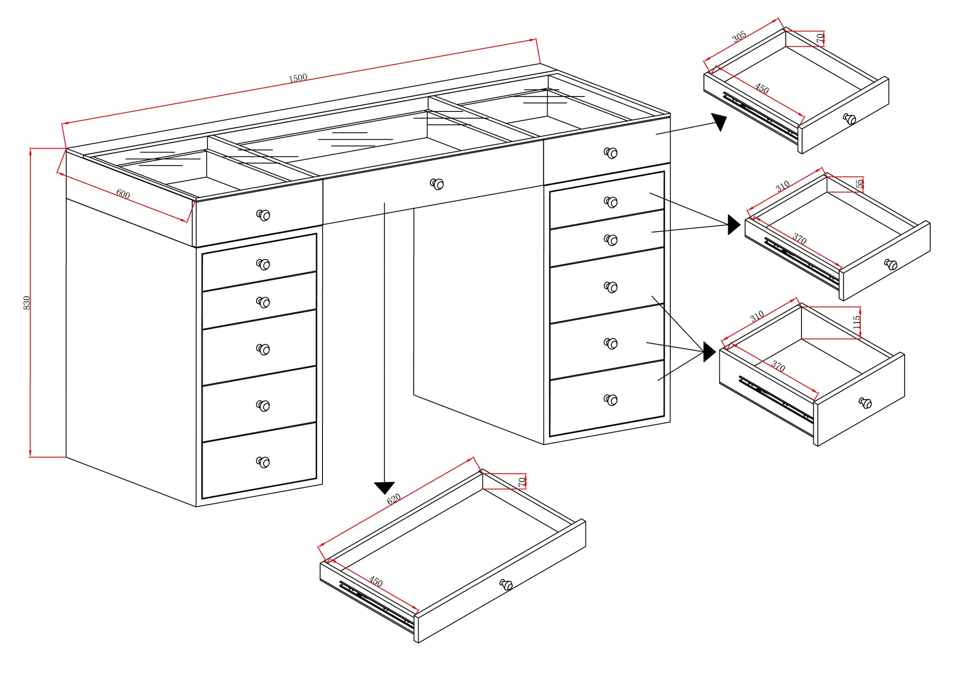 **Makeup chair, inserts in the drawers and other accessories is NOT included.