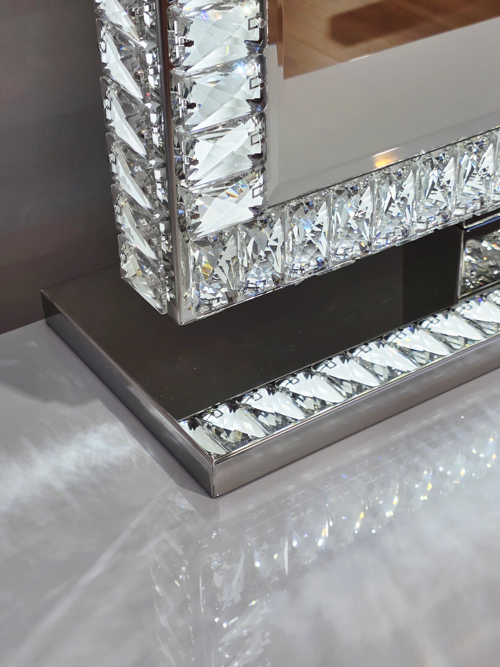 - Alluring LED mirror with stunning Diamond beads